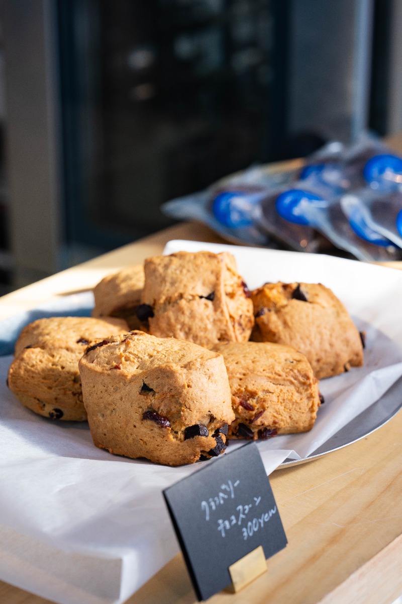 また、店舗限定のスコーン(チョコ、いちぢく、抹茶)やクッキーも根強い人気です。おすすめ来店時間は10:00ごろ!