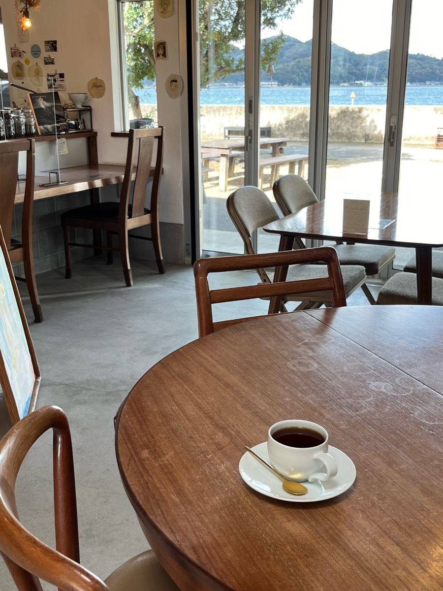 穏やかな海を望む絶好のロケーションの中、店主が丁寧に自家焙煎した“みんなに愛されるコーヒー”を味わうことができる。