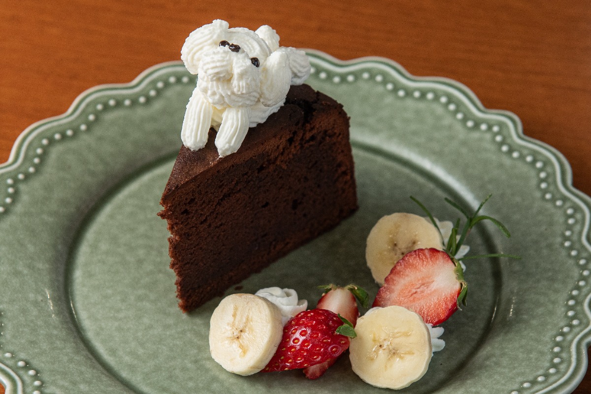「ガトーショコラ(650円)」はホイップクリームで作られた立体のワンちゃんがキュート!