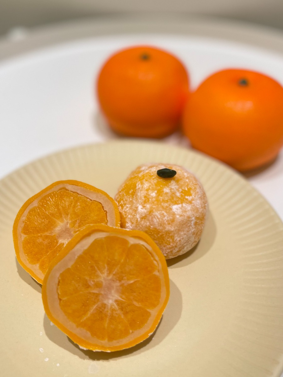 自家製シロップにじっくり漬け込んだ県産みかんを丸ごと包んだ、ジューシーな果実に上品な甘さの白あんと、もちもちの求肥が絶妙に調和した、満足感たっぷりのスイーツです。