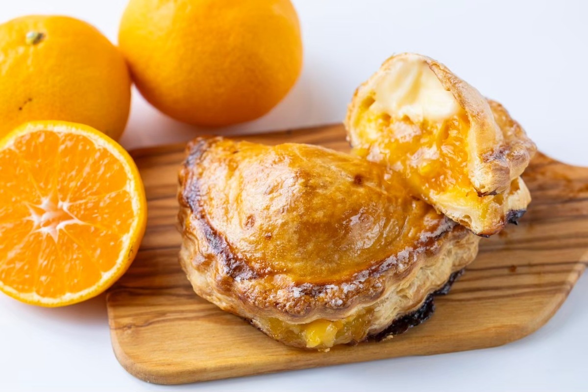 パイ生地のなかにカスタードとマーマレードジャム、みかんがまるごと入っているのがポイント。