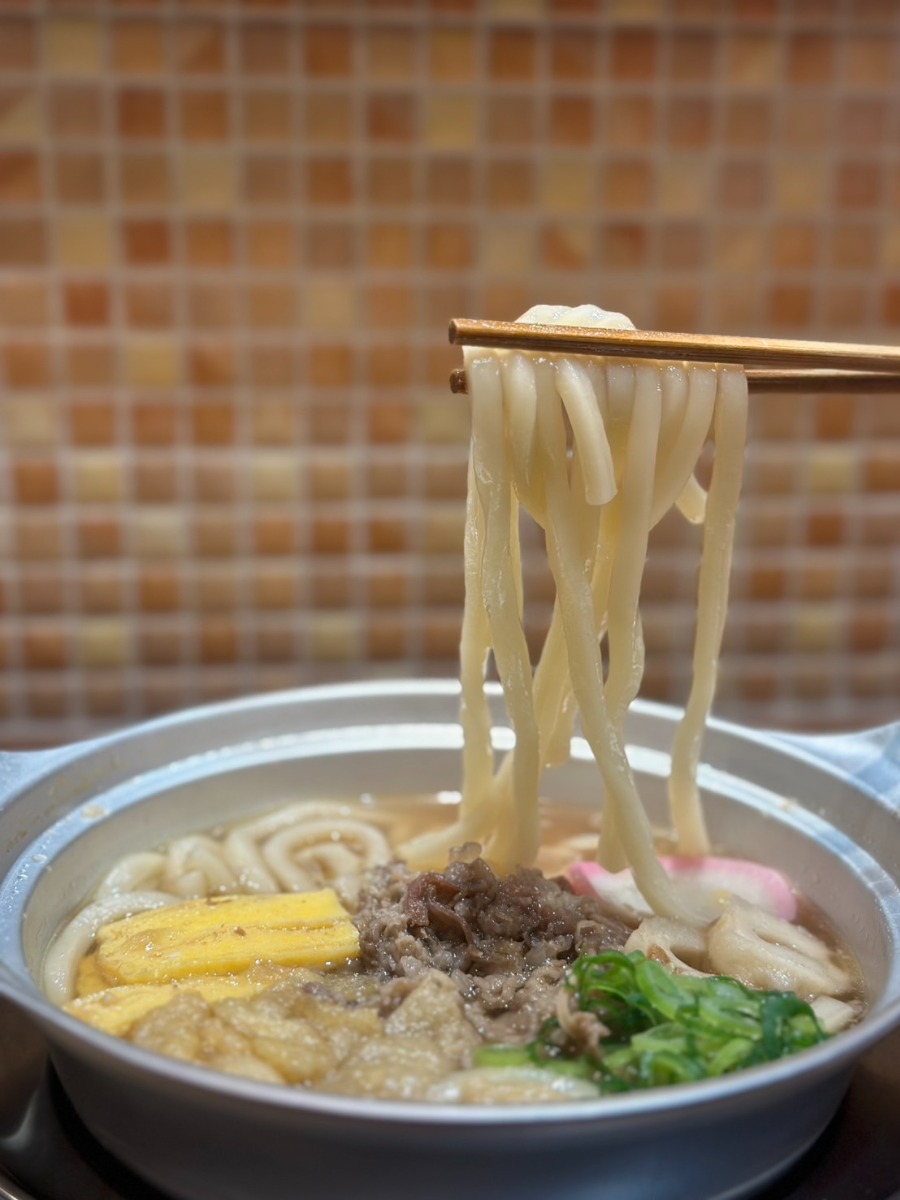 甘めのつゆは、鍋焼うどんとしての伝統的な味わいを守るだけでなく、麺やトッピングの美味しさをさらに引き立てています。