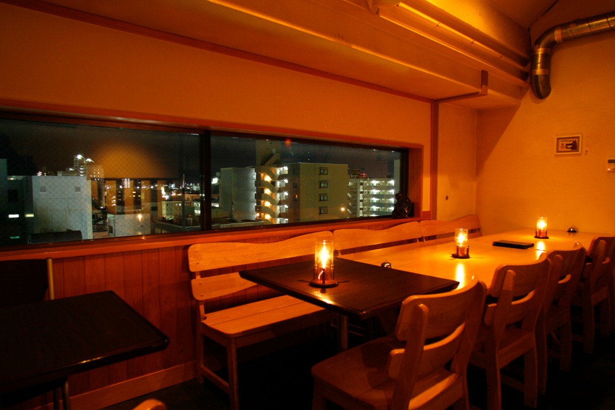 「Branch」の魅力は料理やドリンクはもちろん、二番町にあるビルの9階にあるため、松山の夜景を一望できるのが人気の理由でもあります。