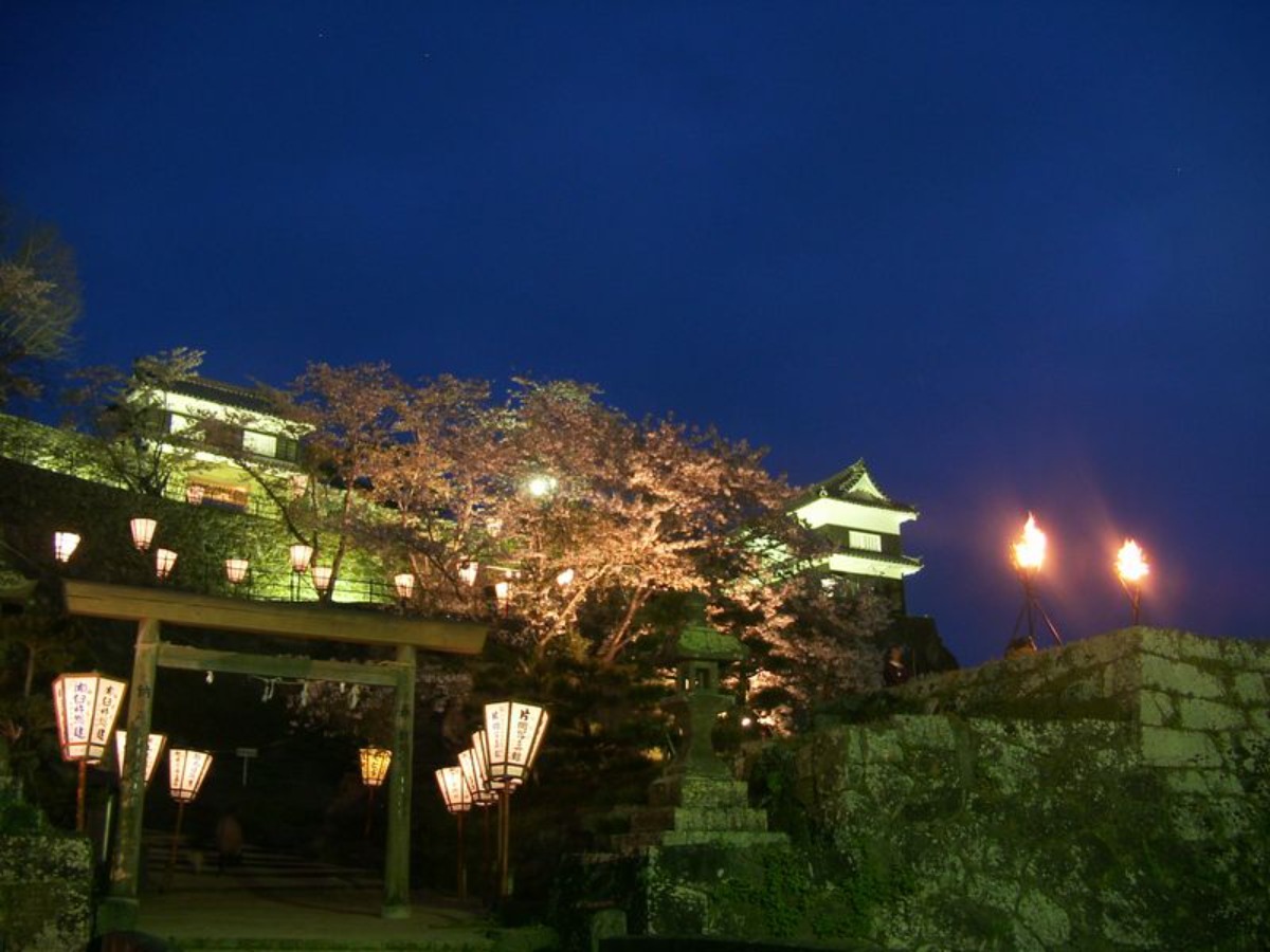 ソメイヨシノを中心に山桜、ボタン桜などが植えられた城跡は桜名所100選に数えられています。
