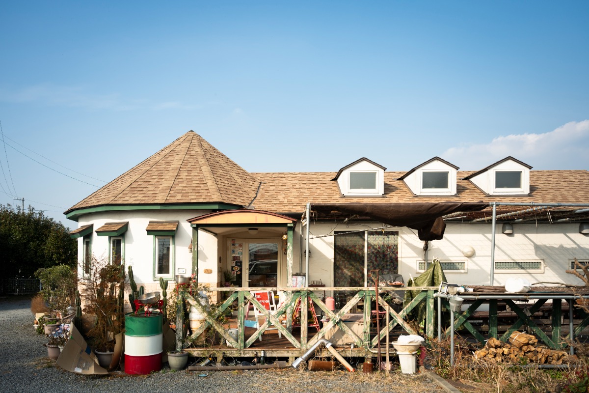 東温市の田園風景に溶け込む「ナポリっ子」。その佇まいは、イタリア・アルベロベッロのトゥルッリと呼ばれる建物を彷彿とさせます。春には、店の外に綺麗な花々が咲くとのこと。