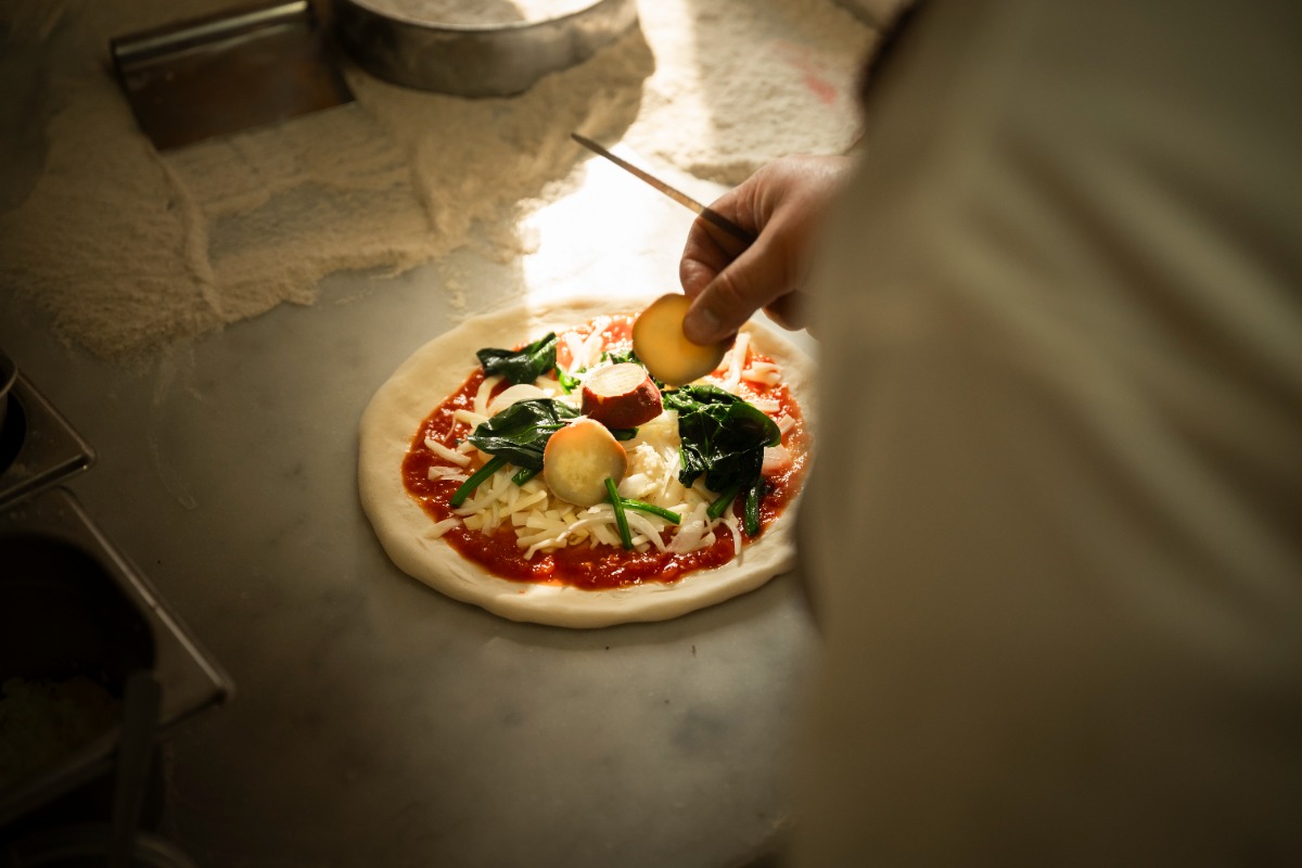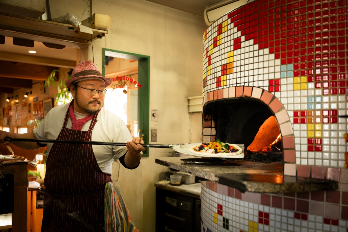 東京や愛媛の「マルブン」で修業を積んだ店主が作る、もちもち食感の薪窯ピッツァが自慢。フランスパン用の粉を中心に4種の粉をブレンドし、唯一無二の味わいを生み出しています。