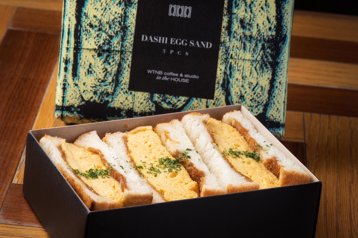 「出汁巻きたまごサンド」はテイクアウト予約する人も多い人気商品。お洒落すぎるパッケージで、手土産にもぴったり!