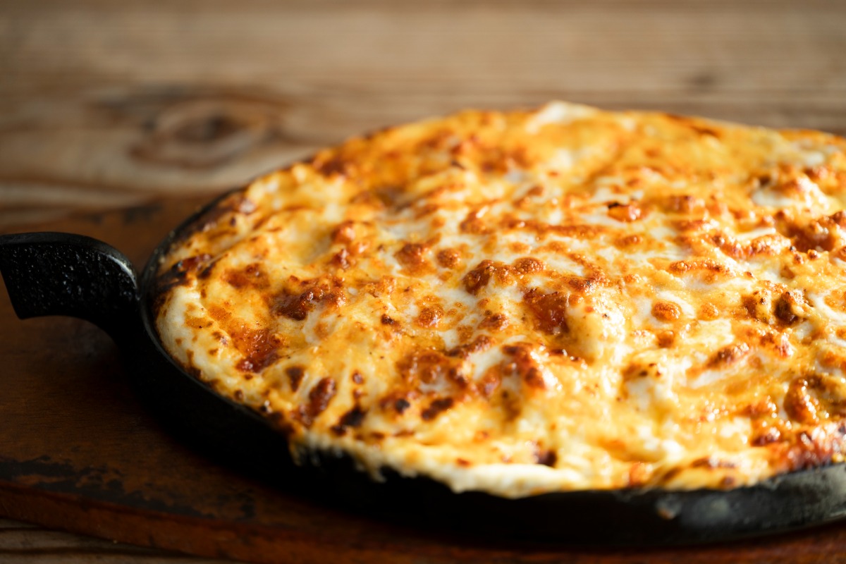 「ラザーニャ」は、自家製パスタとホワイトソース・ミートソース、3種類のチーズを層にして焼き上げています。創業当初から使っている鉄板で熱々とろとろに仕上げた人気No.1メニュー。ハーフサイズも提供中です!