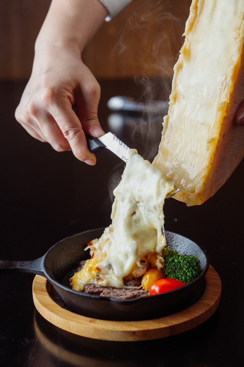 店でも人気な「ラクレットチーズ」は、食材を肉とエビから選べます。その上に、フランスから取り寄せた、塩分控えめで濃厚なラクレットチーズをたっぷりとかけ、まさにチーズ好きにはたまらない一品に。