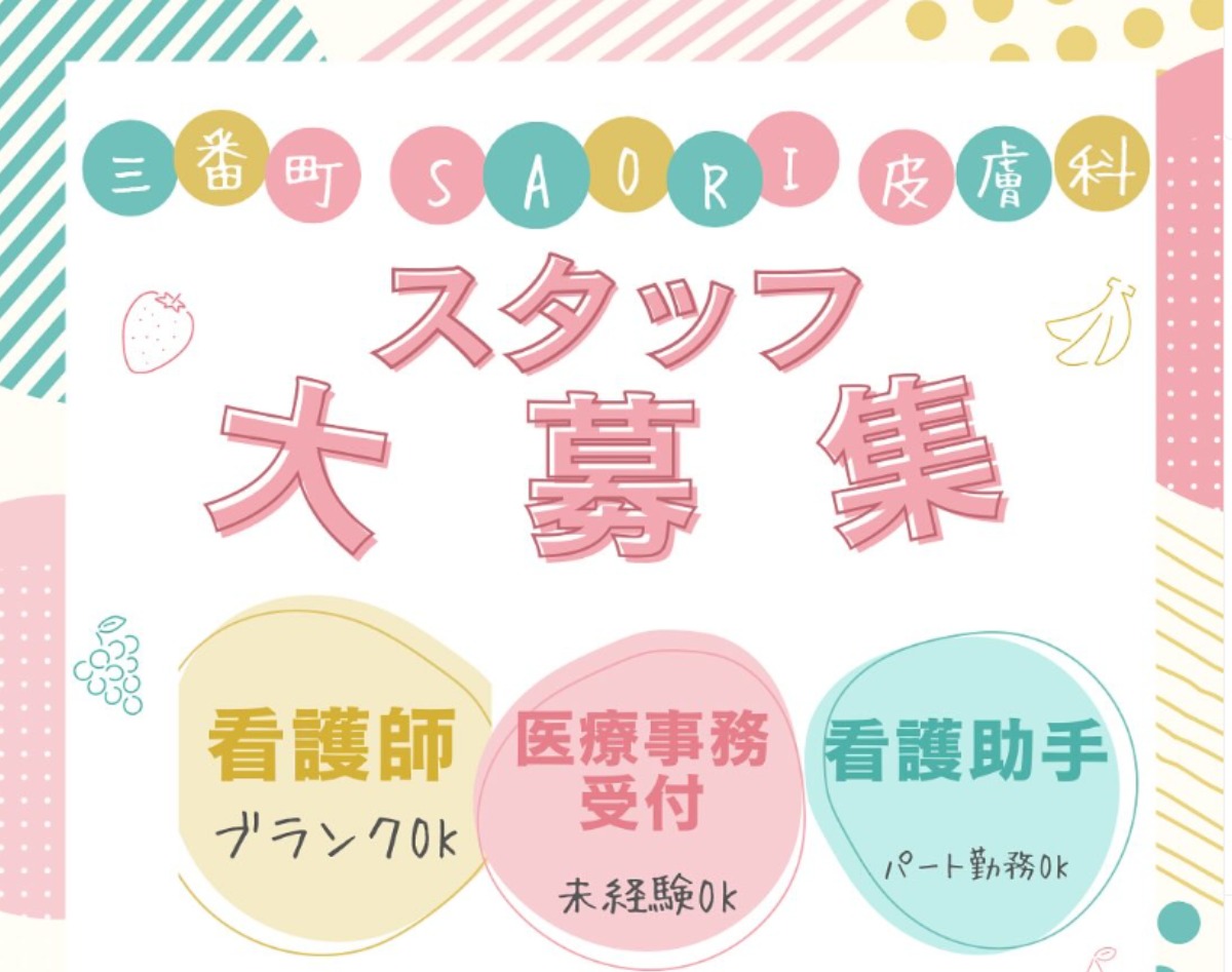 三番町SAORI皮膚科では一緒に働いてくれるスタッフを募集しております!