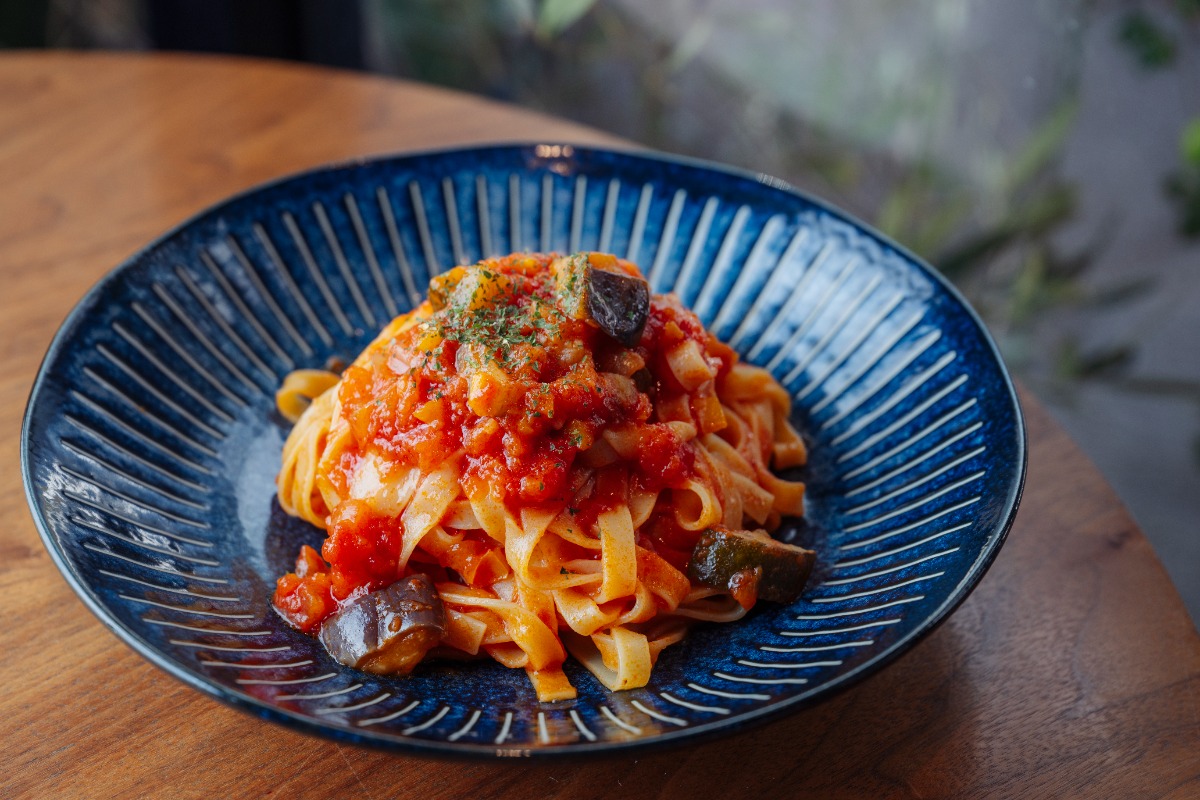 店内ではパスタも提供しています。全6種のうち「彩野菜のカポナータ」(880円)がおすすめです!