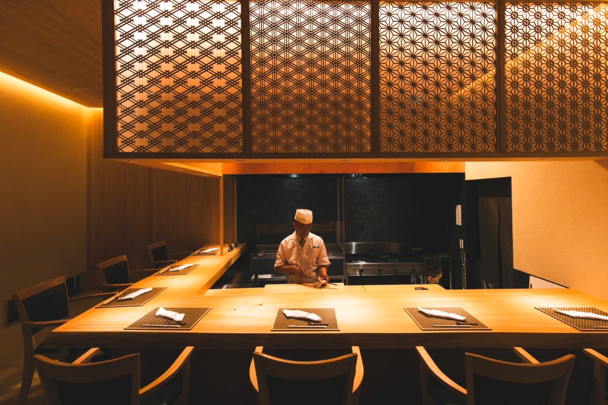 このカウンターでは、料理人の技を間近で楽しめるライブ感があり、おひとりでも楽しめます。
