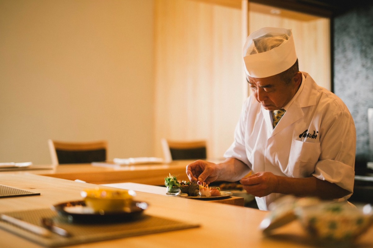 世界的に名高いザ・リッツ・カールトン大阪「花筐」で23年、JWマリオット奈良「校倉」で4年。一流ホテルの和食統括料理長としてその名を馳せた吉田信一氏。