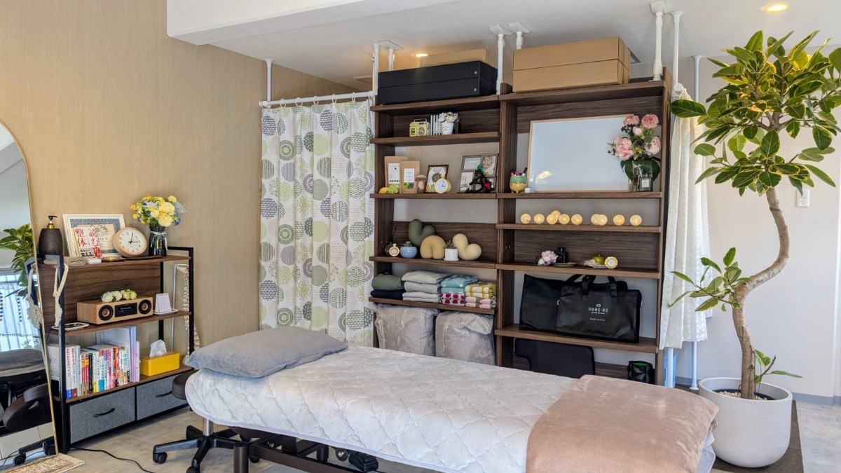 施術スペースは北欧インテリアと多肉植物に囲まれた落ち着いた雰囲気で、心からリラックスできる癒やしの空間となっています。