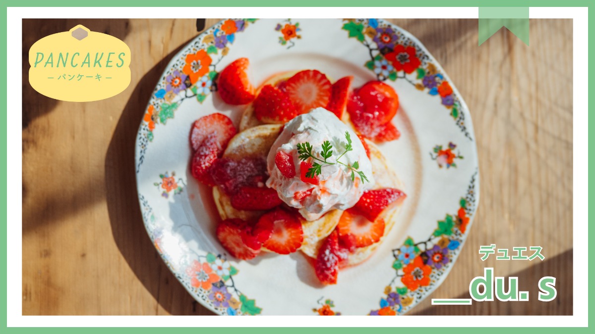 この記事では、松山市三番町に2024年11月にオープンした「_du.s(デュエス)」さんのパンケーキをご紹介します。
