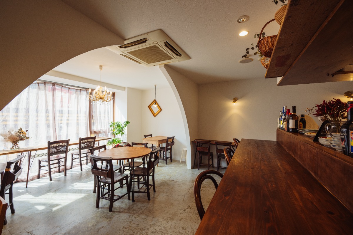 アンティークなテーブルや椅子、やさしい灯りが並ぶ店内は、思わず長居したくなる居心地の良さ。