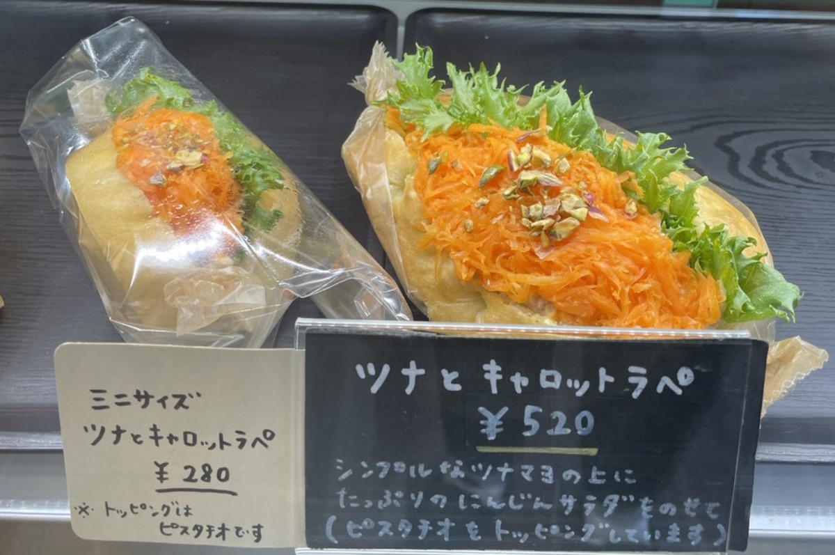 ツナマヨとたっぷり敷きつめられたキャロットラぺが相性抜群の一品です。