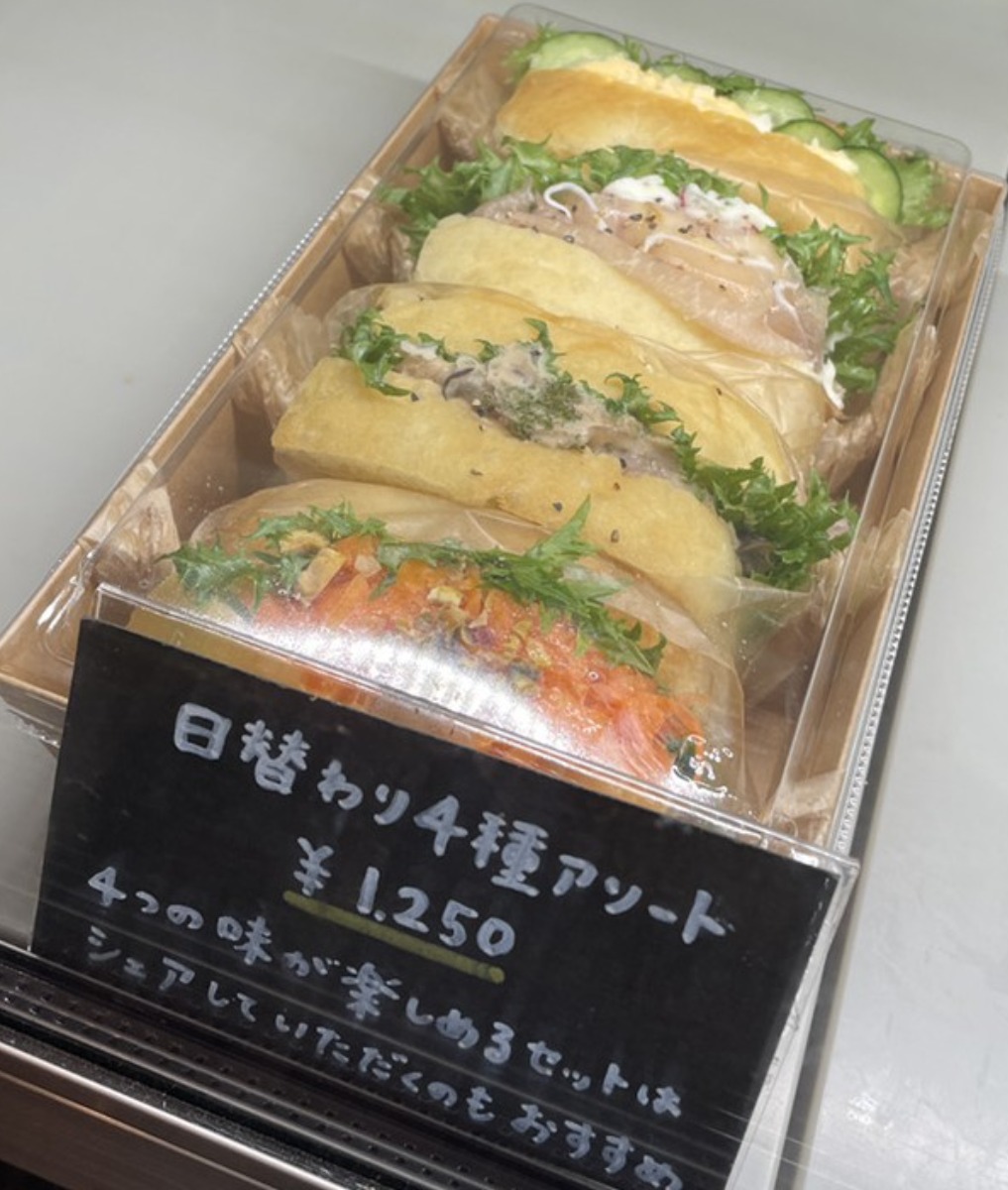 4種が詰まった夢のボックスです。サンドの種類はその日のお楽しみ!