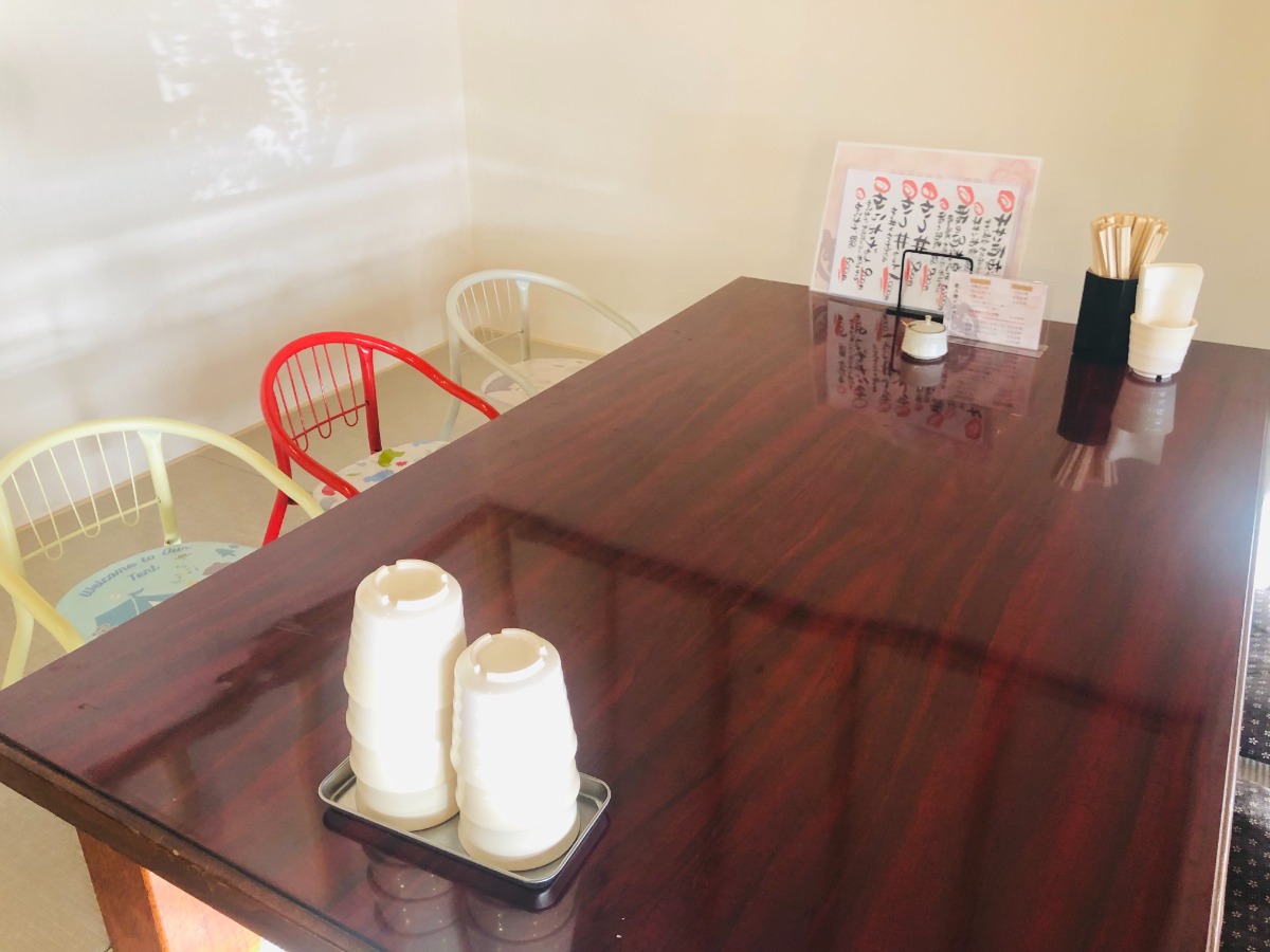 ファミリーでの来店にも嬉しい配慮が光る店内には、お子様用のイスや食器がしっかり用意されています。広々とした空間で、ベビーカーのままでも入店しやすく、ゆっくりと食事が楽しめます。温泉施設内ということもあり、食事の前後にくつろぎながら過ごせるのも嬉しいポイントです。