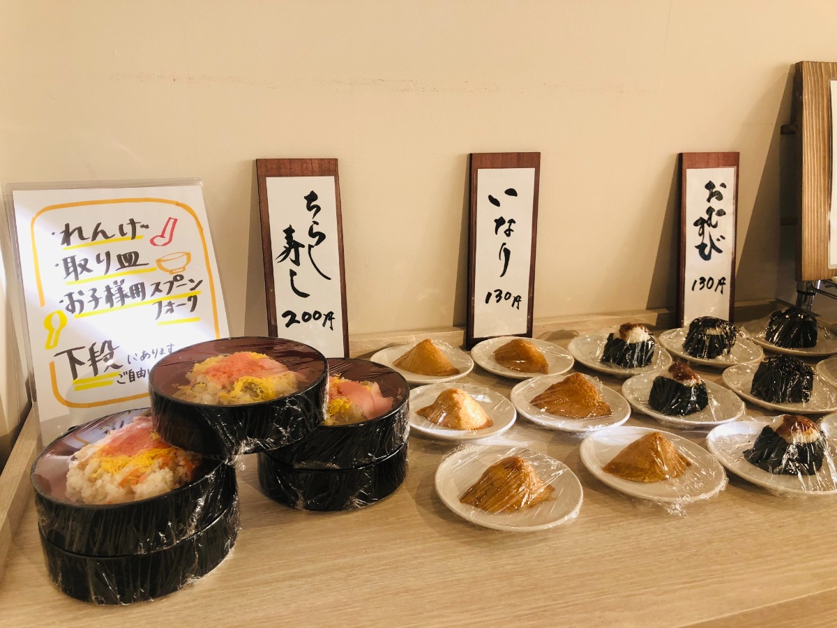 うどんのお供にぴったりなのが、色とりどりの「ちらし寿司」。れんこん・昆布・にんじん・高野豆腐・ごぼう・油揚げなど約6種類の具材に錦糸玉子とおぼろが散りばめられ、見た目も華やか。