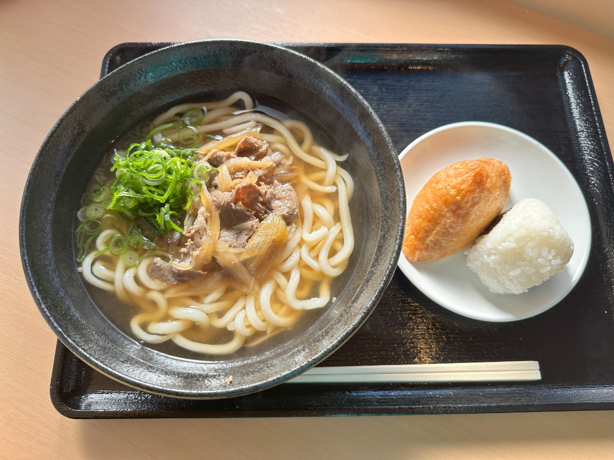 やや甘めに味付けされた牛肉が、うどんダシと絶妙に絡み、口の中に広がるまろやかな風味がたまりません。