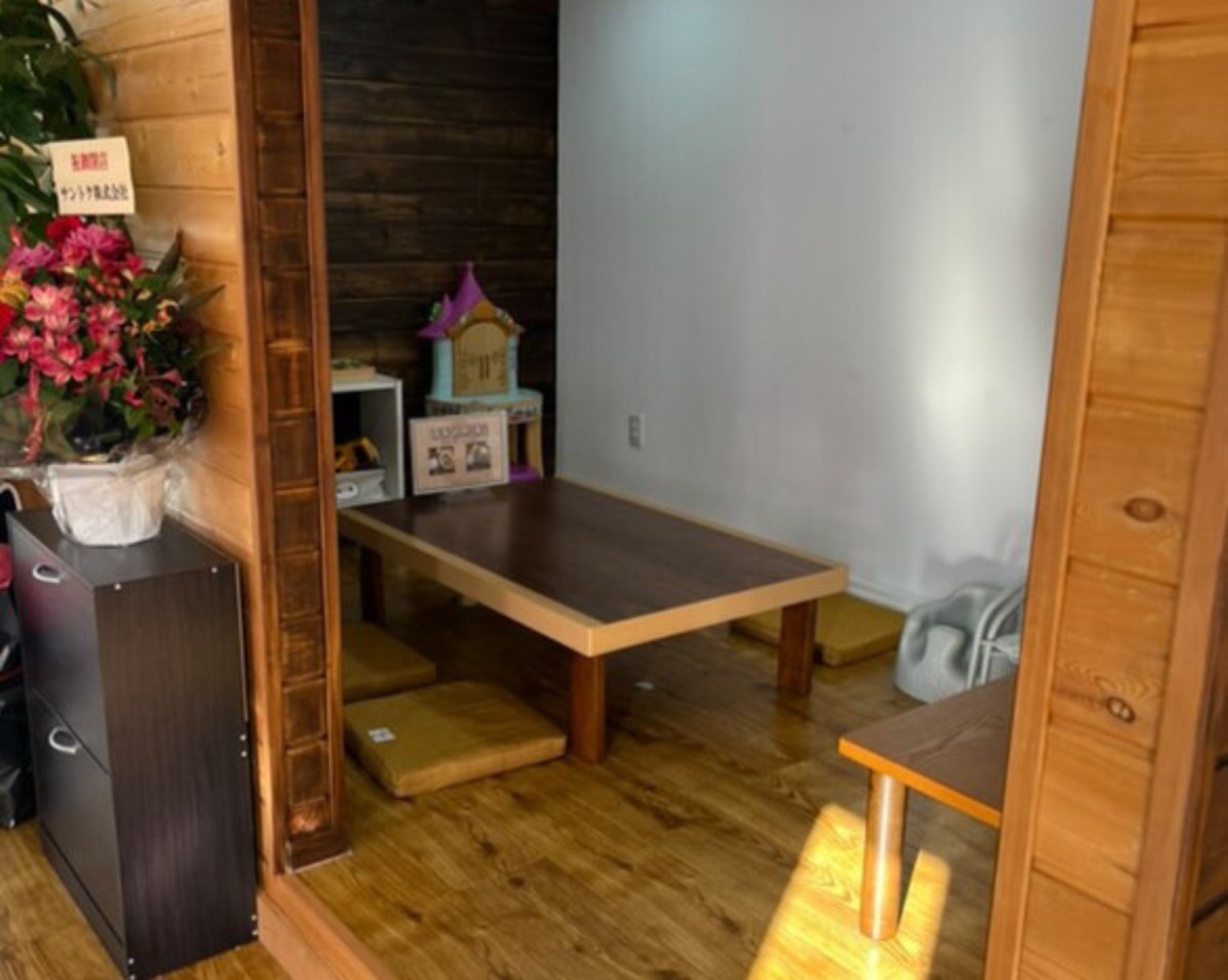 店内はカウンター3席、テーブル14席あり、気の温もりあふれる空間が広がります。