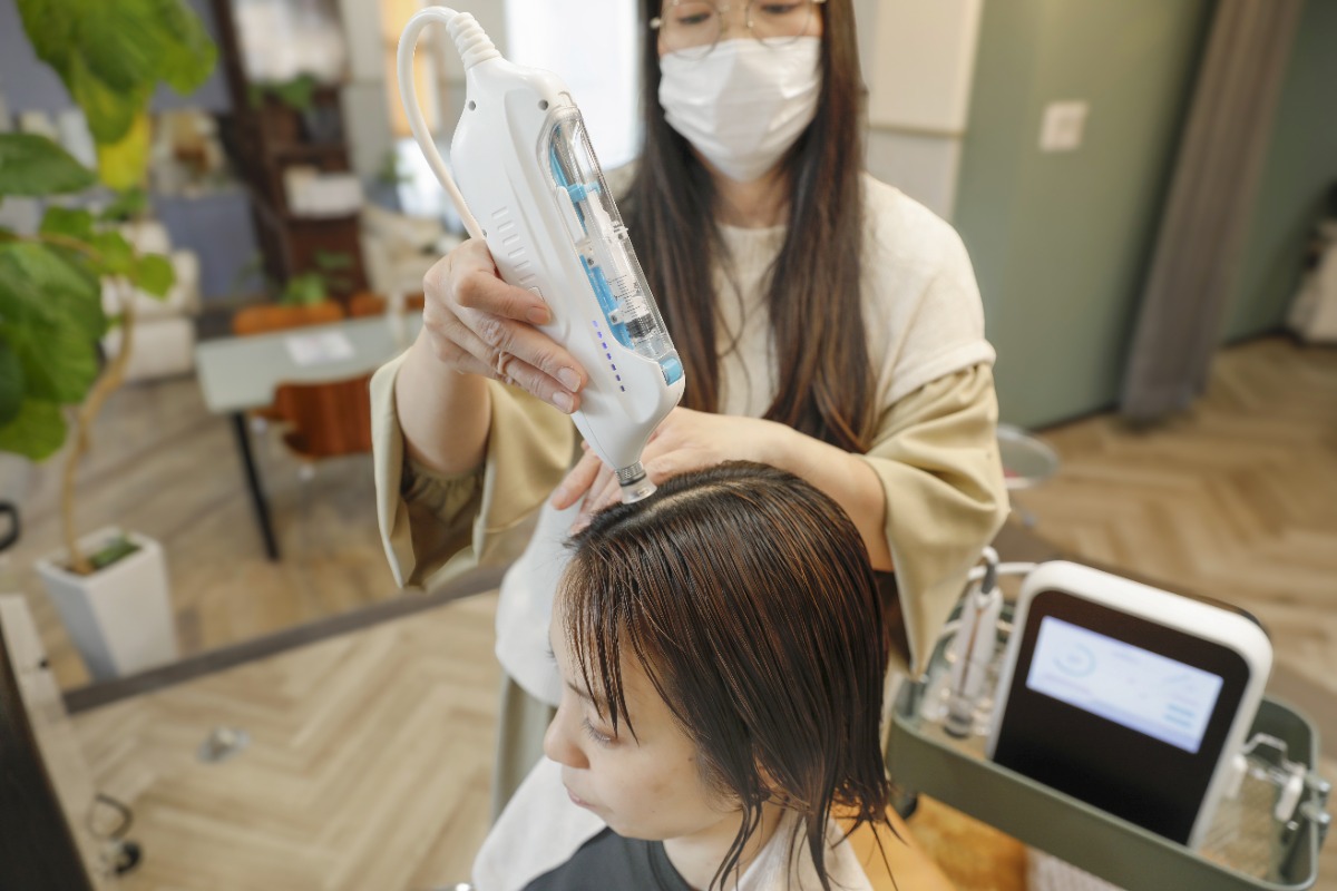 これを空気の圧力で頭皮に直接浸透させる最新の育毛メニューです。