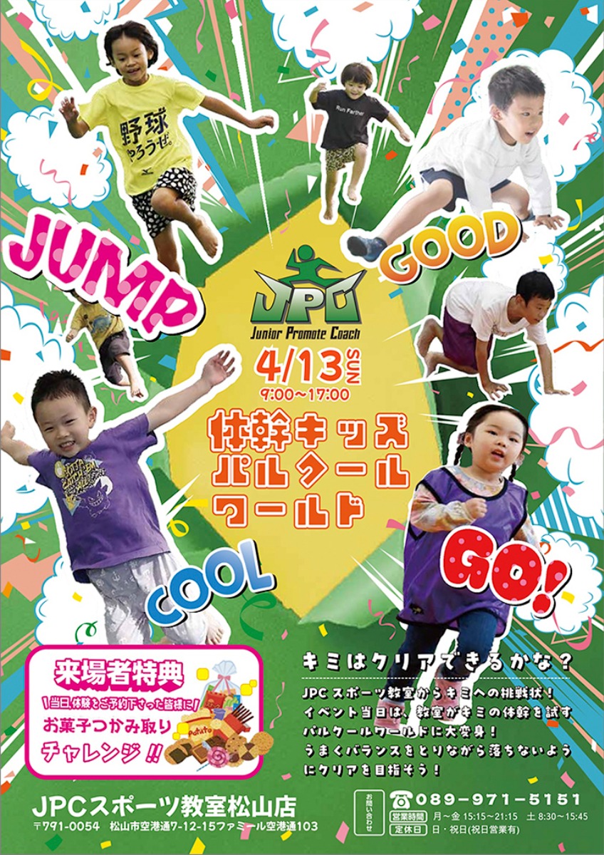 2025年4月13日、“人生に必要な心・技・体の学びの場”JPCスポーツ教室が主催する、「体幹キッズパルクールワールド」の開催が決定しました。