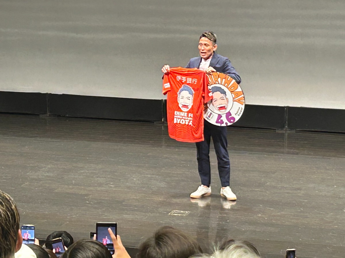 とくに愛媛FCユースの子どもたちや、熱心な愛媛FCファンの方々の目は、希望と興奮に輝いていました。森脇さんの明るく前向きなエネルギーは、