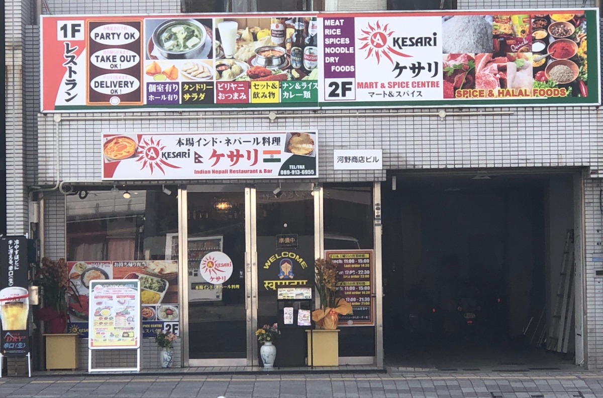 松山市本町にオープンした「ケサリ」は、1階が本格インド・ネパール料理を楽しめるレストラン、2階にはスパイスの販売と予約制の中ホール(10~12人)・大ホール(最大60人)を備えています。