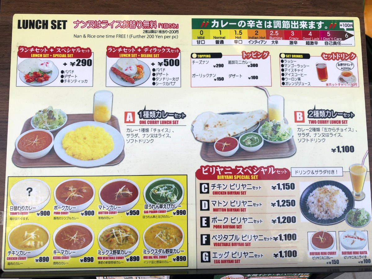 カレーとビリヤニの辛さが細かく選べるのもうれしいポイント。辛いものが苦手な人も安心です。