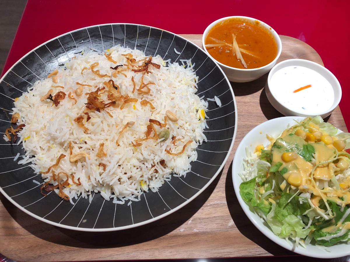 なかでもマトンビリヤニは、じっくり煮込まれたマトンがホロホロとほどけ、香ばしい米と見事に絡み、スパイスの奥深さを感じられます。