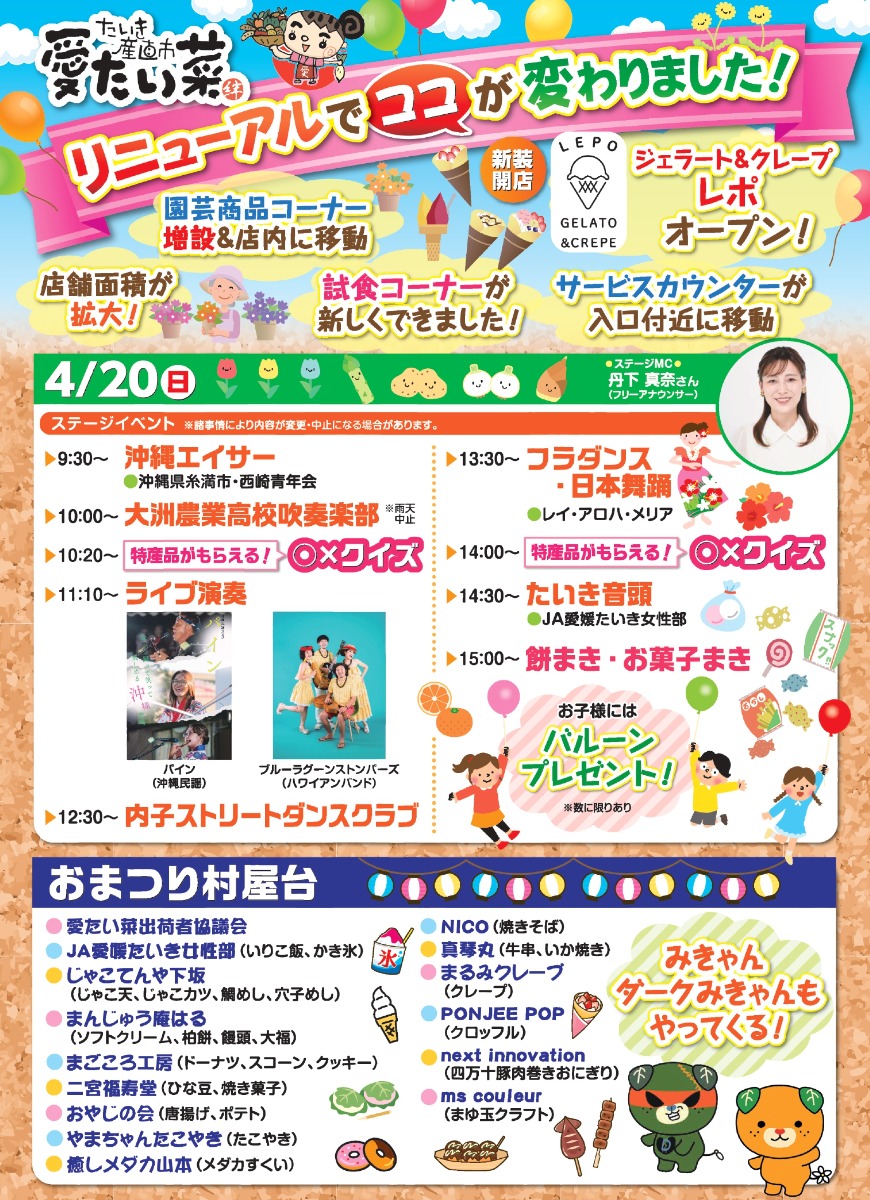 新店【2025/04/19 RENEWAL OPEN】|大洲市| たいき産直市 愛たい菜 リニューアルイベント開催!