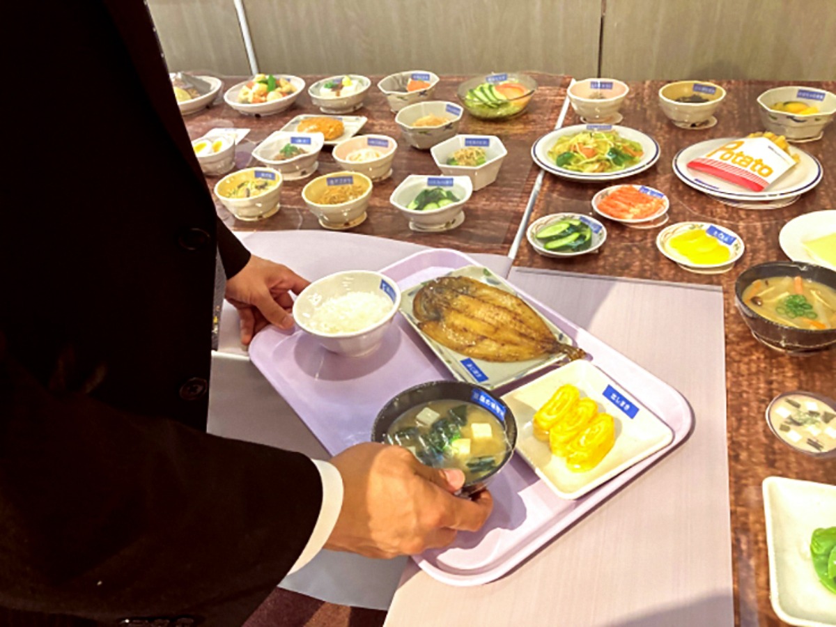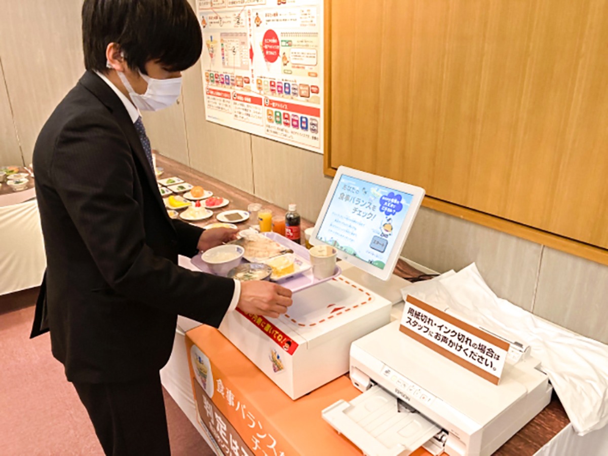 「食育SATシステム体験コーナー」では自分が食品サンプルで選んだ献立の栄養価やバランスを瞬時に表示されます。