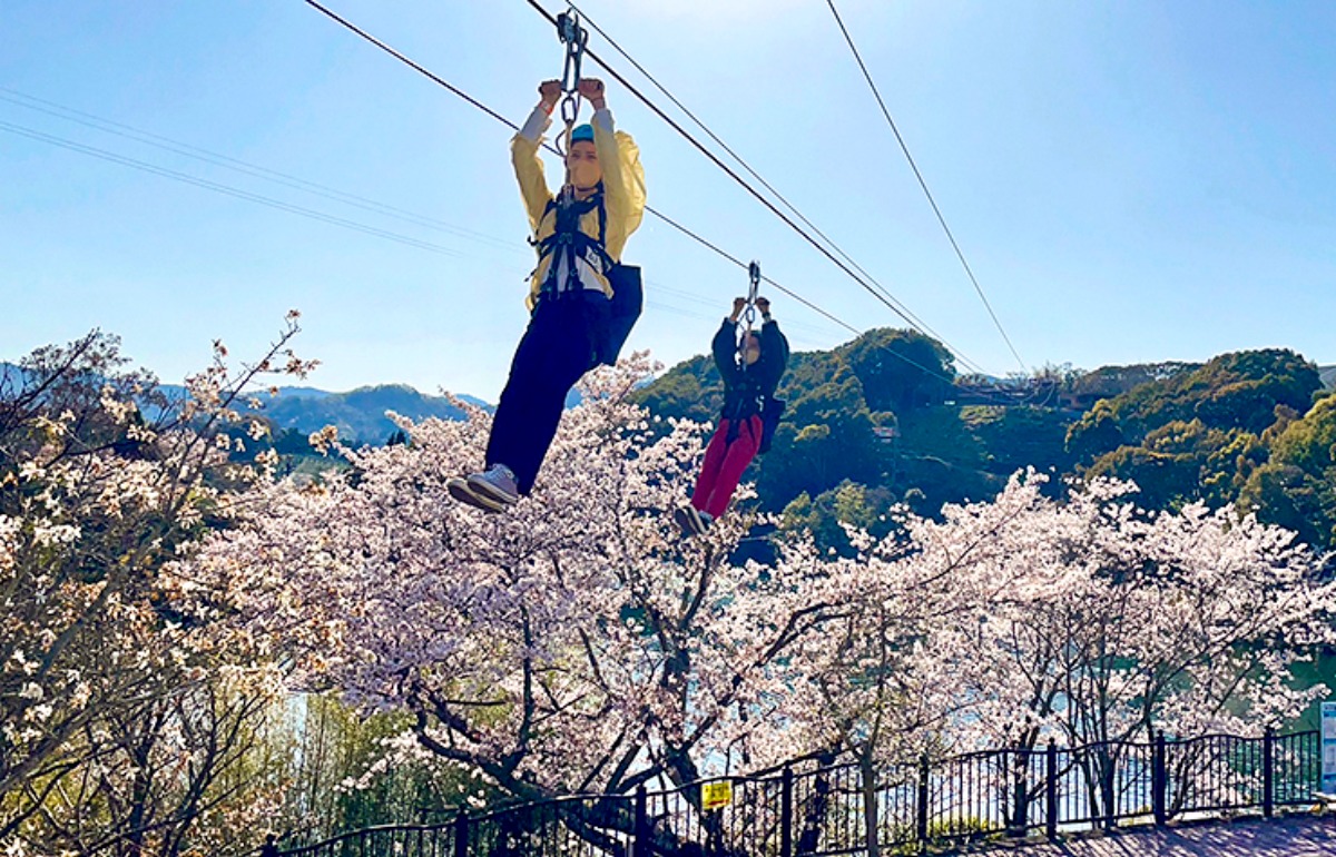 手持ち撮影用のスマホホルダーが500円でレンタル可能なので、スマホホルダーをレンタルしてジップラインから素敵な春の風景を撮ってみては。