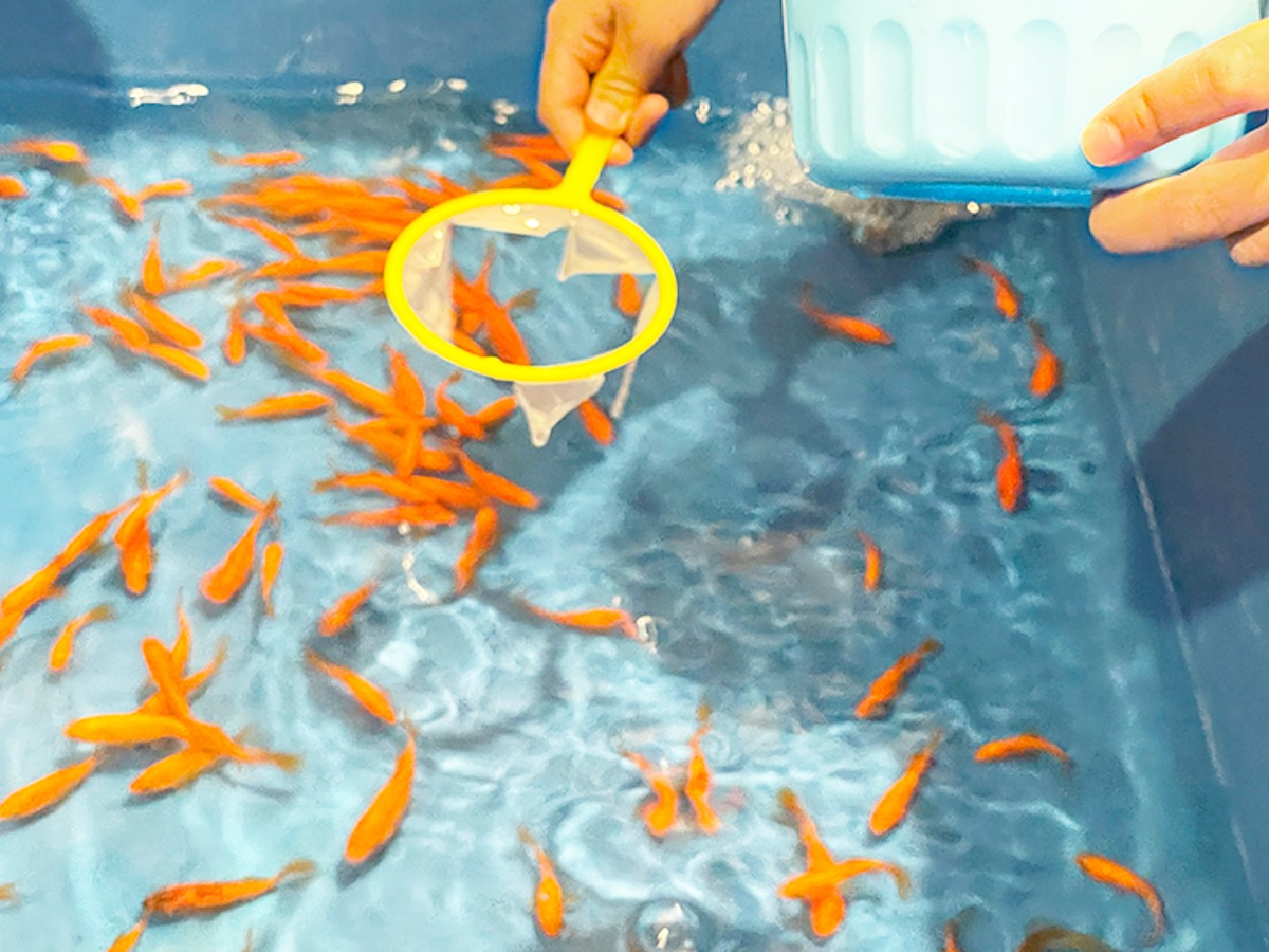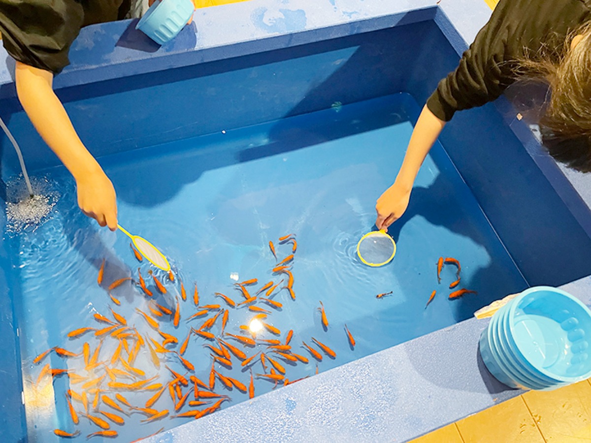 金魚すくい体験ができるコーナーでは、ポイを手に我が家の子も大興奮!