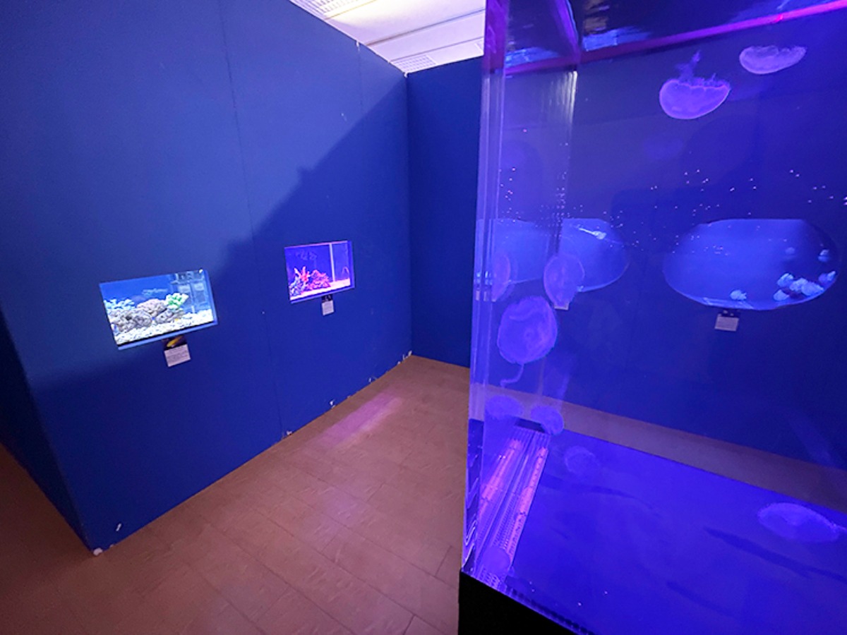館内に足を踏み入れた瞬間、青いライトに照らされた幻想的な水槽が目に飛び込んできます。