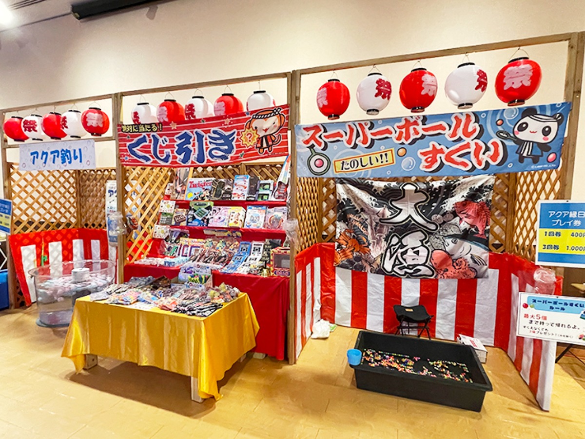 タッチコーナー付近にはカメの餌やりやくじびきなど、縁日のようなイベントも開催されていましたよ。