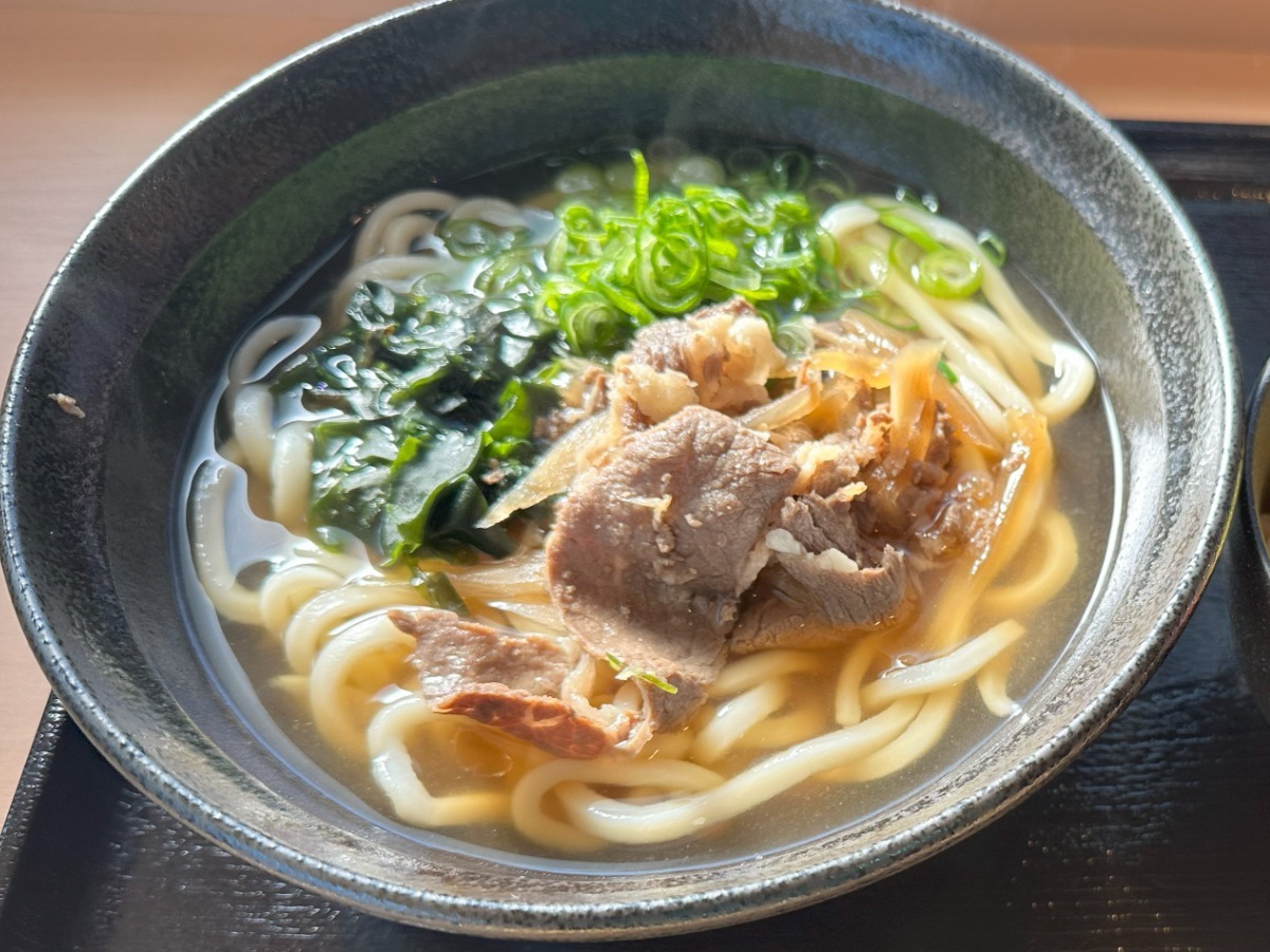 やや甘めに味付けされた牛肉が、うどんダシと絶妙に絡み、口の中に広がるまろやかな風味がたまりません。