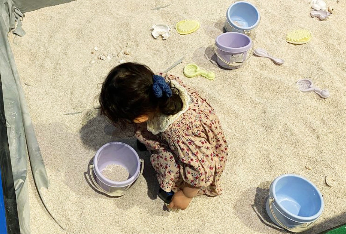 「まさかのそれ?」って感じではあったのですが、良い感じのサイズの砂場がとても気に入った様子。