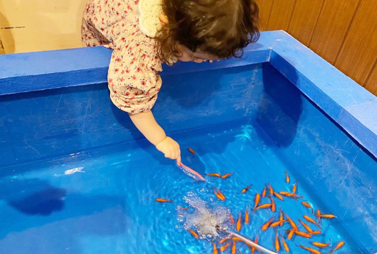 入るときに、なんと子どもは金魚すくい用のポイをひとつもらえます。