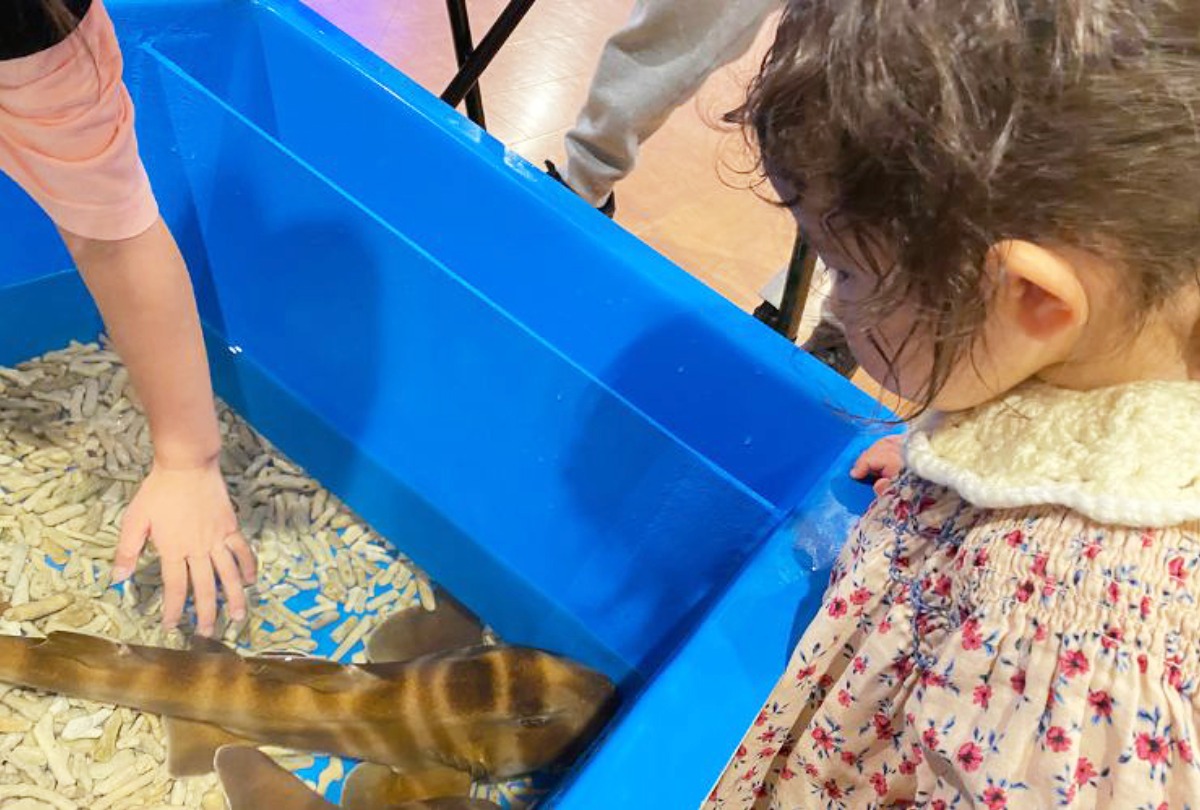 タッチングプールにはヒトデやエビ、ネコザメなど様々な生き物が!