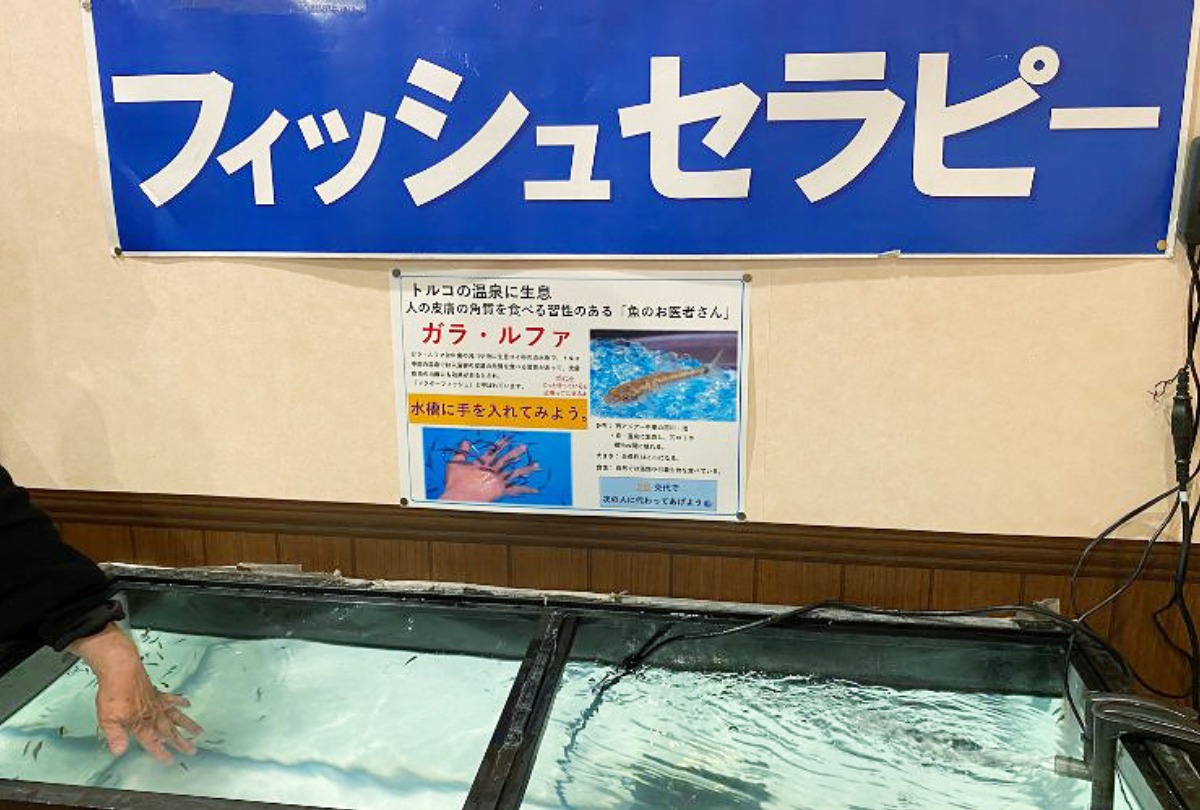 フィッシュセラピーコーナーでは、手を入れてフィッシュセラピーを体験可能。