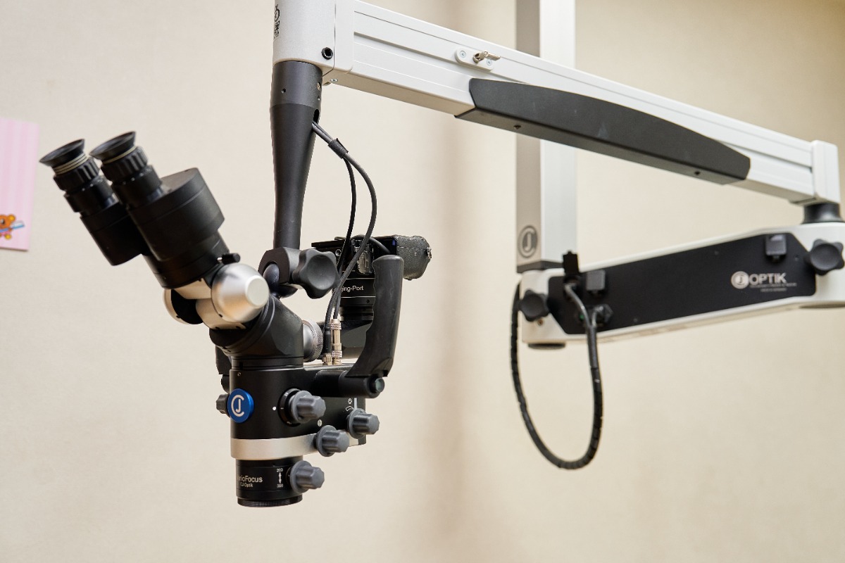 ▲マイクロスコープで治療風景を録画することで治療を「見える化」
