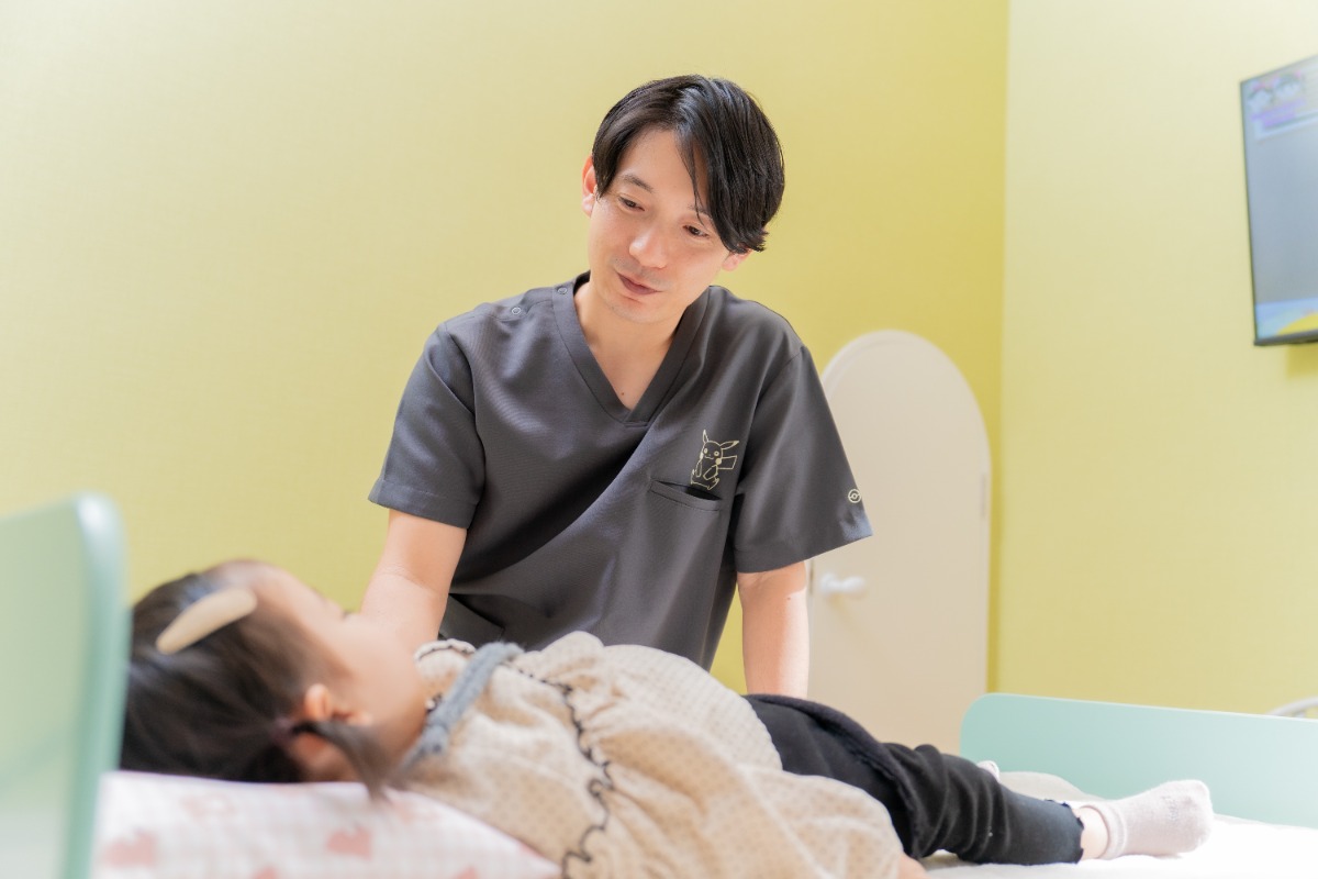 「いきなり治療用の椅子に座るのは怖い…」という子どもたちのために、オリーブ歯科クリニックでは専用の「こども診察室」を設け、リラックスしながら診察を受けられる環境を整えている。ベッドに寝転んで歯を見てもらったり、親子でブラッシング指導を受けたりしながら、無理なく歯科クリニックに慣れることができる。