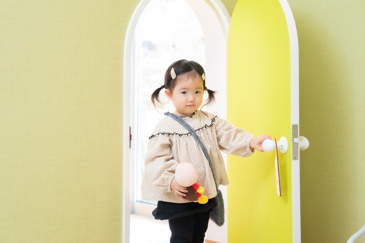 ▲「こども診察室」には、子どもサイズのドアを開けて入る