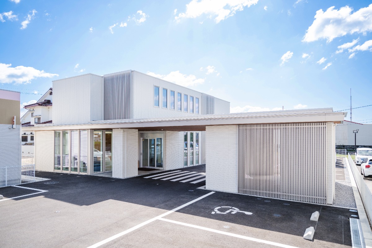 ▲正面玄関の先は一般診療用入口と、発熱外来用入口・待合に分かれる