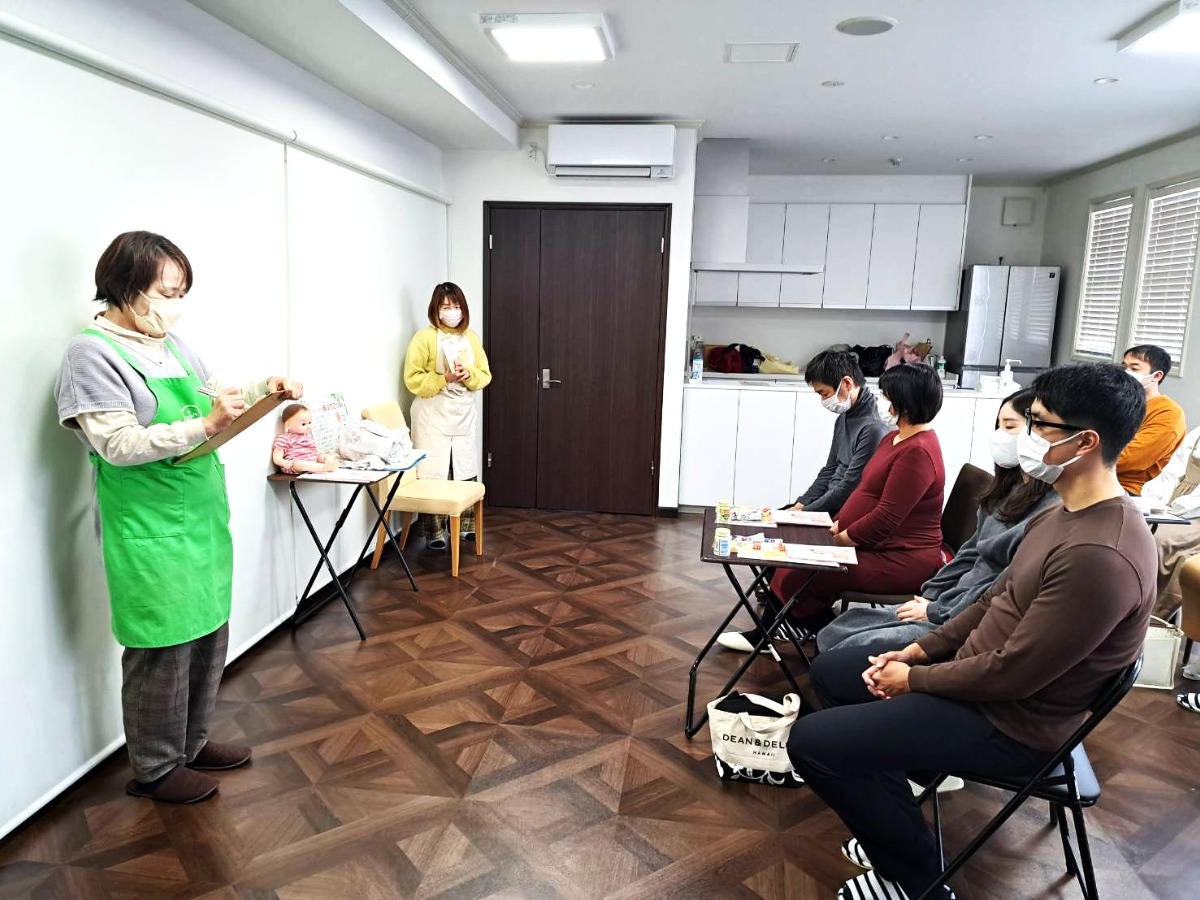 また昨今では男性の育児参加も多いため、希望者はママと一緒にパパも育児指導に参加可能。例えば、産前の保健指導。おむつ替えや沐浴指導の仕方が学べる。