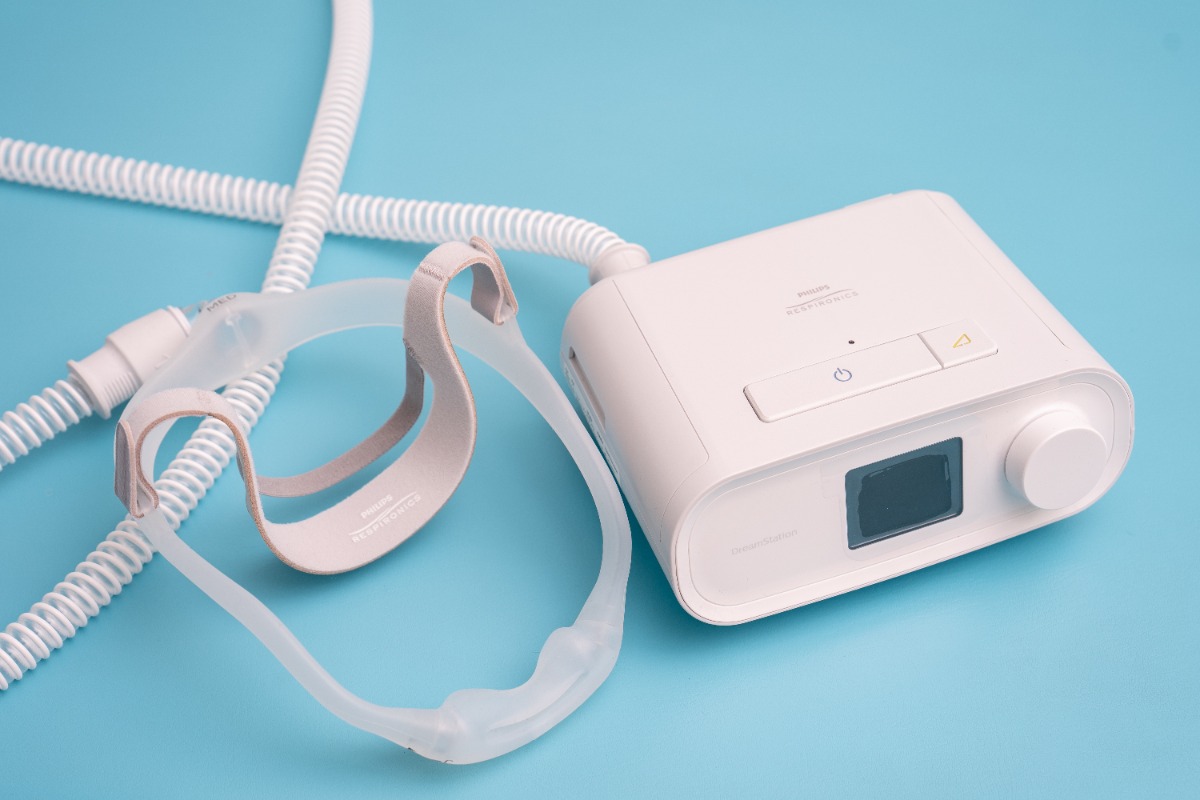 自宅での検査の結果、重症で保険適応を満たせば、CPAP(シーパップ)療法を採用。専用マスクを装着し、気道を広げることで無呼吸を防ぐ。