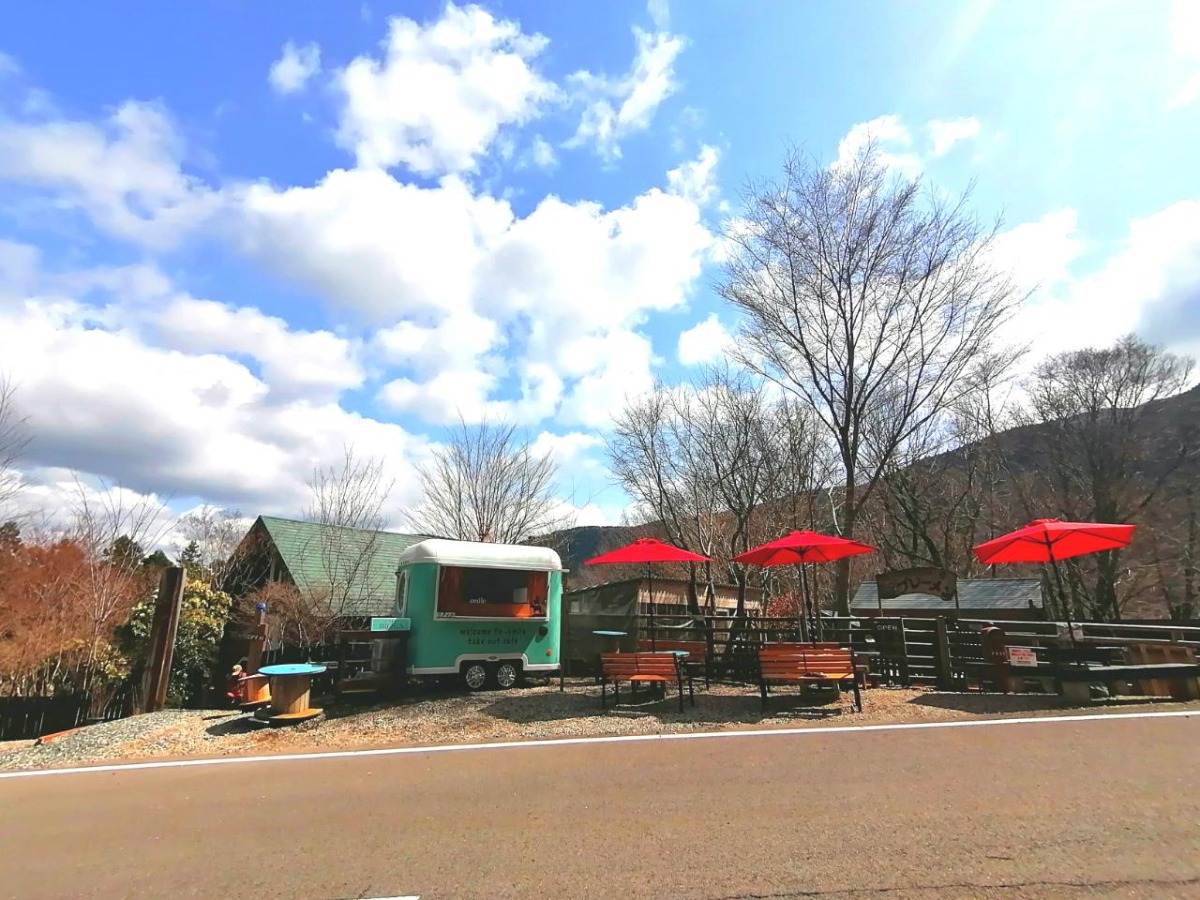 道路沿いのテラス席では、久万高原の緑の山々や動物たちを眺めながら、こだわりのコーヒーや軽食を楽しめます。